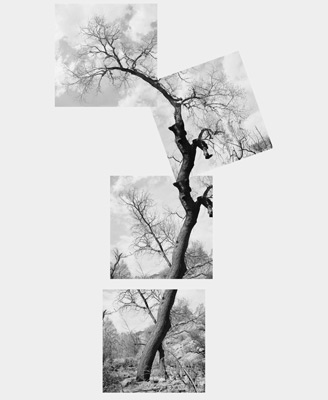 The work is presented in three different mediums: gelatin silver prints, carbon pigment prints, gelatin silver prints deconstructed and mounted on aluminum plates. Michael starts with a fine silver print, mounts them on aluminum that he cuts and files by hand. The plates are then layered with paint into which the photograph has been set, abraded back through the pentimenti, rubbed with graphite and pure pigments, and finally, waxed. The pieces range from small single plates to 5 plate pieces that when assembled together present an imposing testament to both the strength and the delicacy of his vision and of the Gila’s natural beauty.